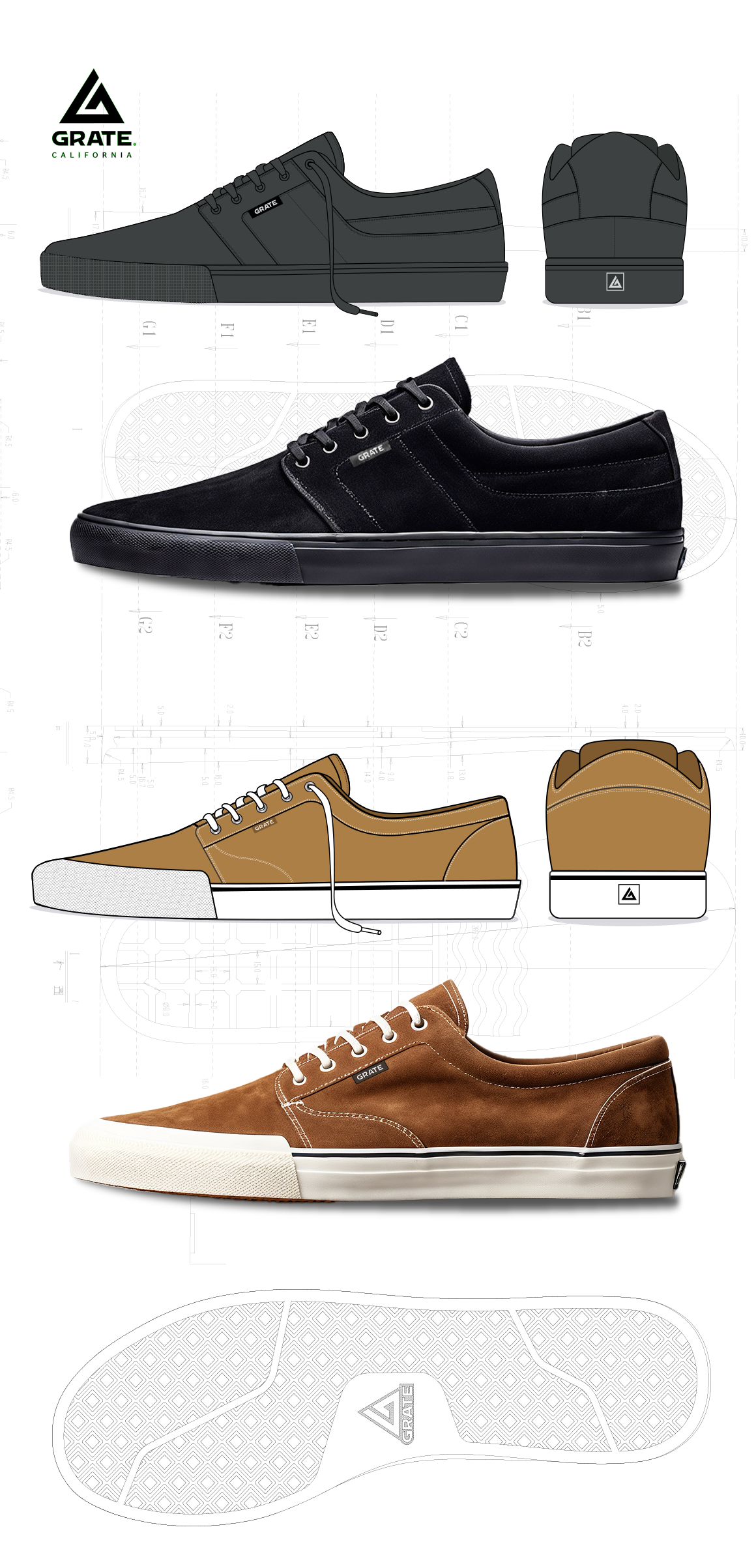 Vulcanized skate shoe concept Designed for the licensed Chilean brand Grate from Polemic CL.